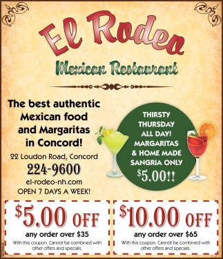 El Rodeo Mexican Restaurant Menu In Concord New Hampshire