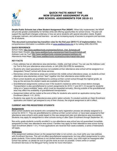 Quick Facts About The New Student Assignment Plan And School
