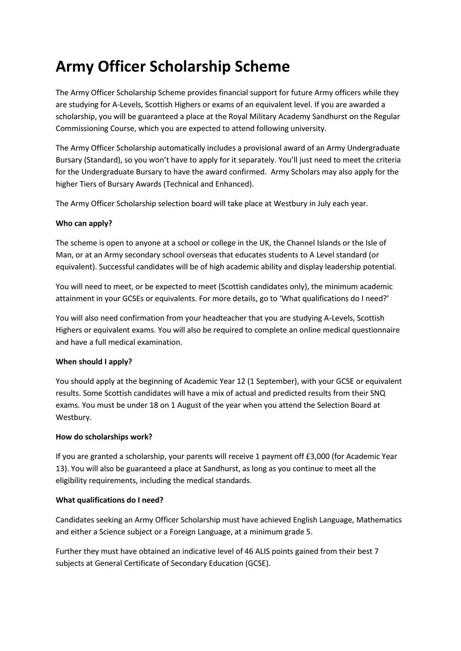 Army Officer Scholarship Scheme 2016 By British Army